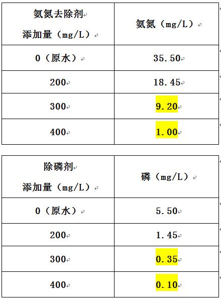 a、氨氮在投加量300mg/L(每吨废水投加0.3kg的氨氮去除剂)就可以将氨氮控制在10mg/L以下;