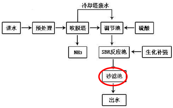 在SBR反应池后的砂滤池投加千赢国际·(中国区)有限公司官网的氨氮药剂SN-1。