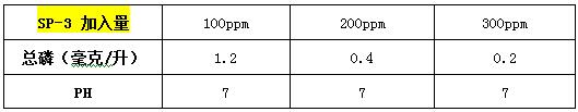 根据现场的情况,千赢国际工程师给其提供了除磷剂SP-2和除磷剂SP-3进行实验,得出以下实验数据: